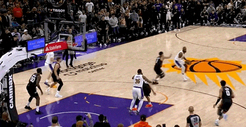 太陽趁勢反擊,連續三分不中,狄龍拿球