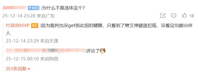 翻譯過來就是,裁判沒有意識到鄔挺嘉這個動作的精髓,只是看到了劈叉投籃伸腿造犯規,沒看到勾腳尖絆人(違體判罰有4類標準,鄔挺嘉的伸腿絆人動作,符合C2標準)
