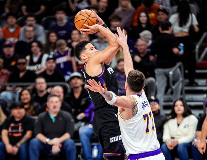 高開低走成常態(tài)。此外湖人在交易市場比較積極,準(zhǔn)備繼續(xù)送走克內(nèi)克特,對鵜鶘的赫伯特瓊斯非常感興趣。太陽這邊,此前布克遭遇腹股溝傷病,本場打湖人迎來復(fù)出,不過二當(dāng)家杰倫格林預(yù)計(jì)還要1周左右復(fù)出。兩隊(duì)上一次交手,湖人慘敗太陽,被終結(jié)了7連勝,在太陽的防守下,東契奇9次失誤,而布魯克斯則對位打穿詹姆斯,全場轟下33分,老詹10中3只有10分入賬。用雷迪克話說,里夫斯缺陣的階段,球隊(duì)需要圍繞詹姆斯設(shè)計(jì)更多戰(zhàn)術(shù)。回顧一下比賽,開場艾頓空接暴扣+斯馬特?fù)寯喾磽簦剪斂怂乖缭绾驼材匪馆^上勁。