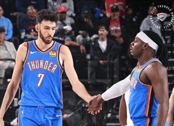 另一邊的雷霆隊,7勝0負排名西部第一,聯盟唯一一支還沒輸過球的隊伍,衛冕冠軍名不虛傳。